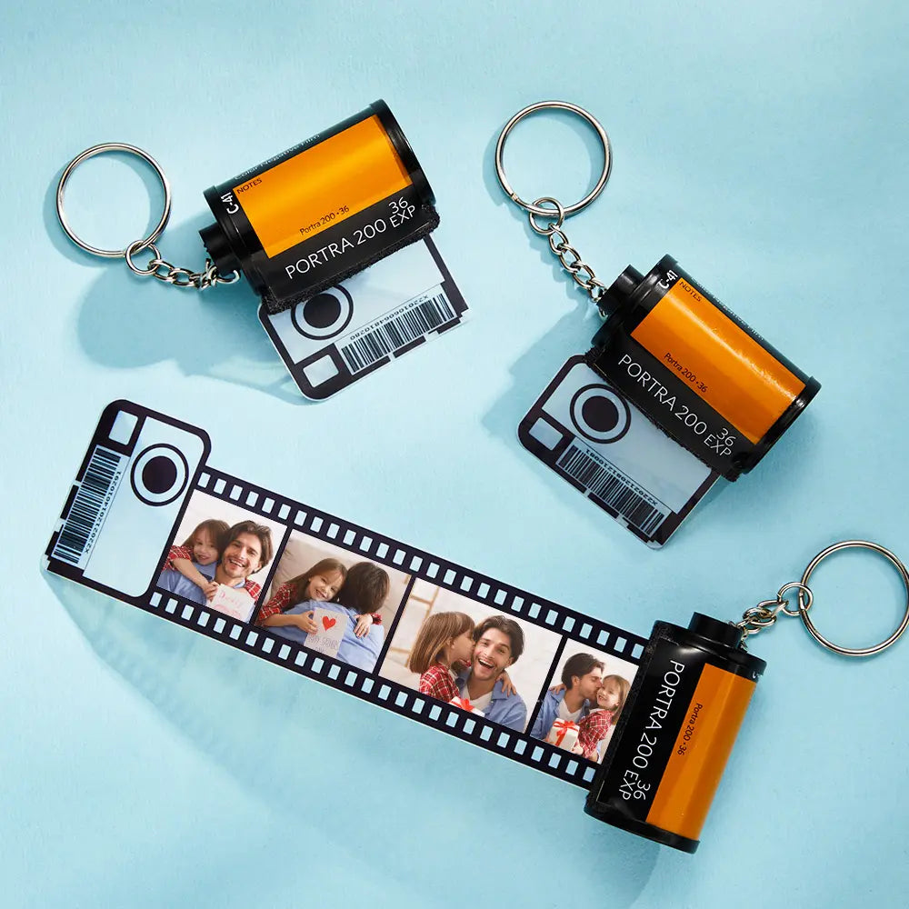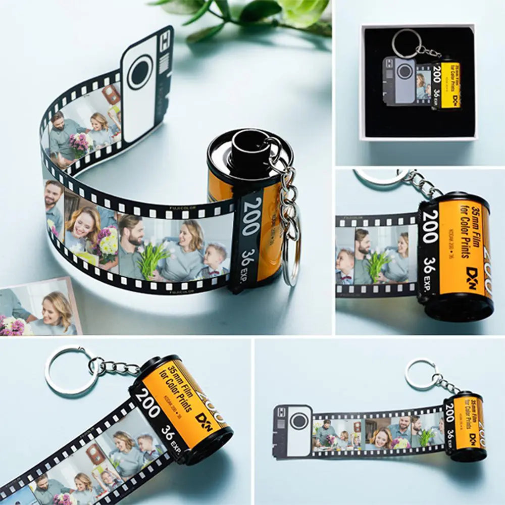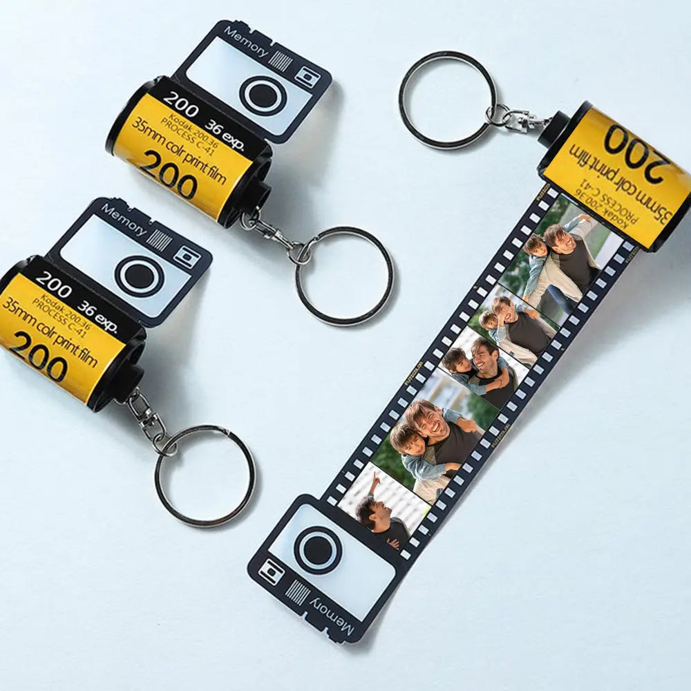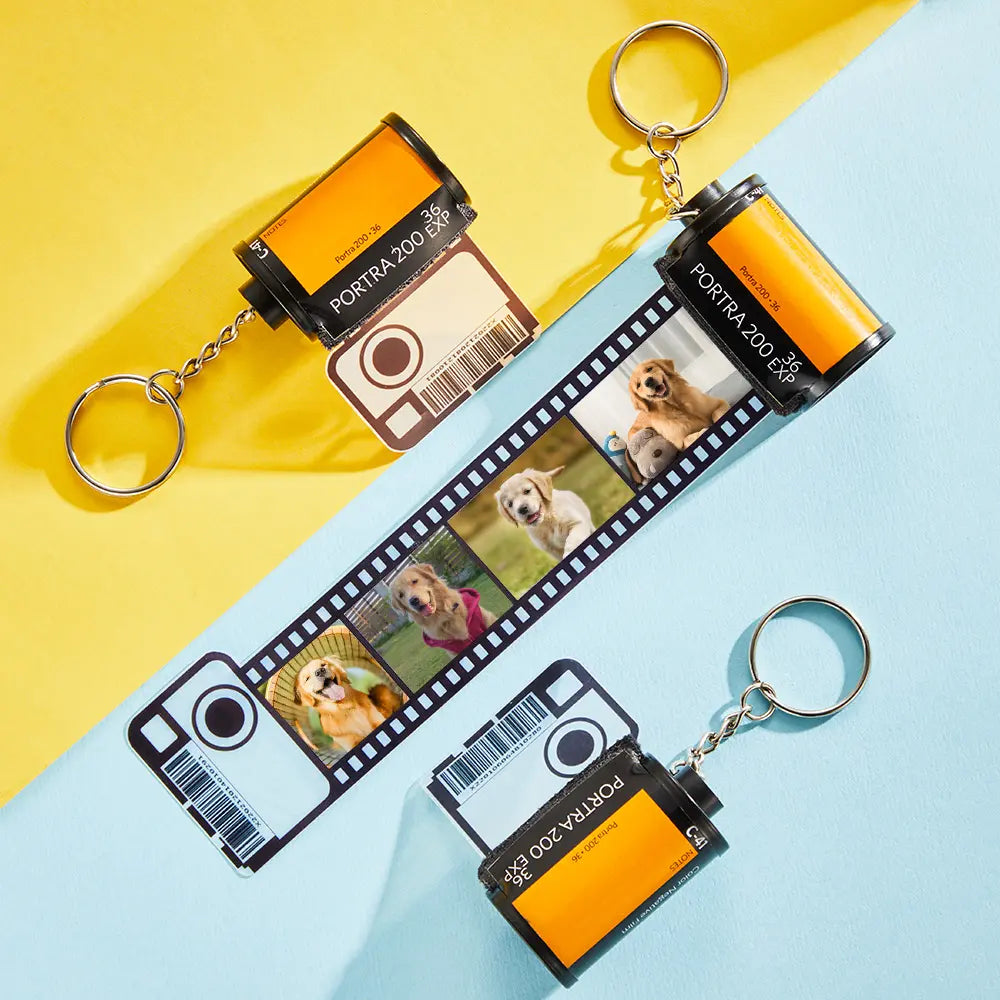 If time can be collected, film is the best memory carrier. The old days are like yellowed film, recording the beautiful moments with you. Personalized Photo Film Camera Roll Keychain. It can be a wonderful gift for various occasions such as birthdays, holidays, anniversaries, mother's day, etc. Add snapshots of everything from family or kids to partners or pets to keep them close at all times.