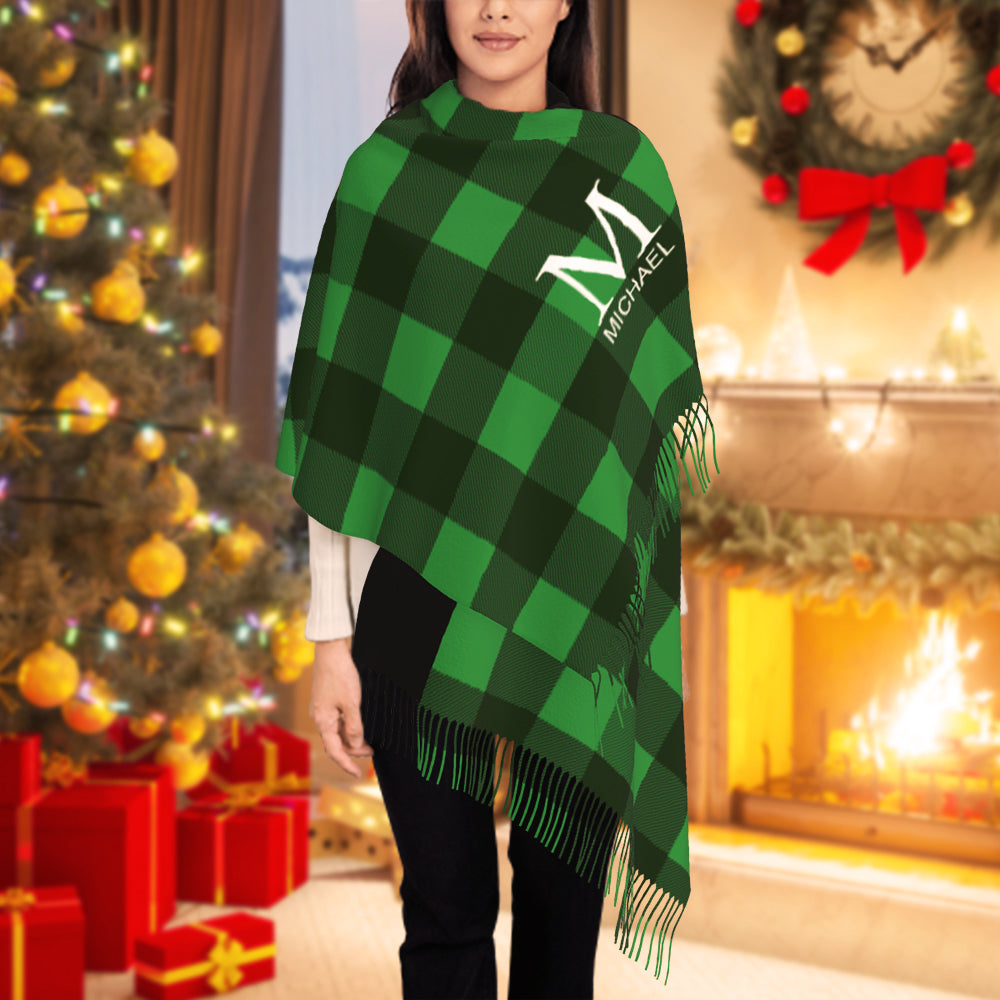 Custom Initial Name Fringe Scarf Persoalized Winter Scarves