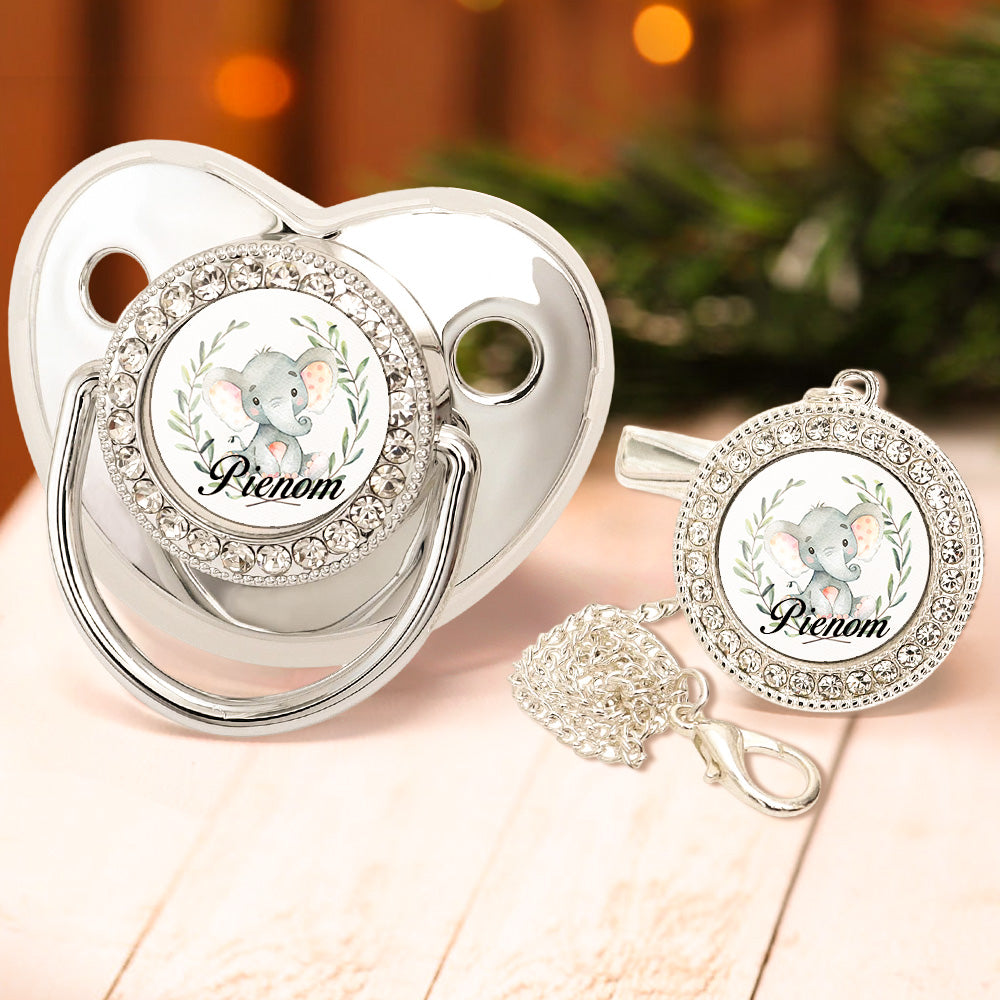 Custom Name Baby Pacifier & Clip Set with Elephant Pattern – Personalized Newborn Gift