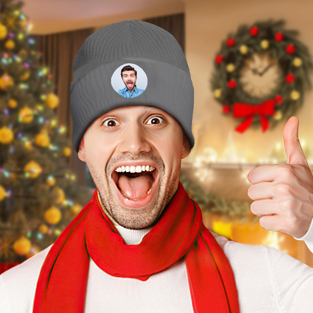 Custom Photo Knitted Hat Unisex Beanie Hat Winter Warm Cap for Christmas Gift