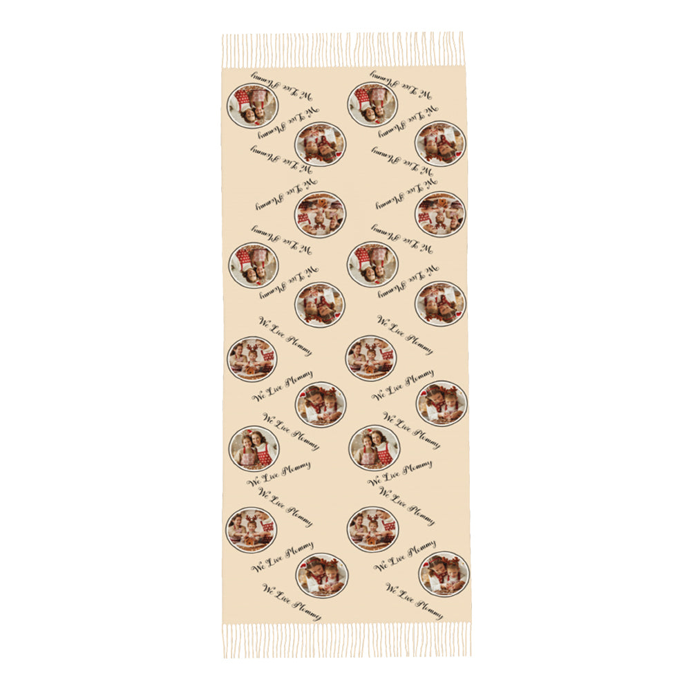 The custom Faux Cashmere Scarf! Made of soft and durable polyester, this scarf features a heat transfer process that ensures your personalized photos and text are printed in stunning detail. With 4 colors to choose from, you can create a unique scarf that suits your style. Perfect for keeping you warm and cozy while showcasing your favorite memories.