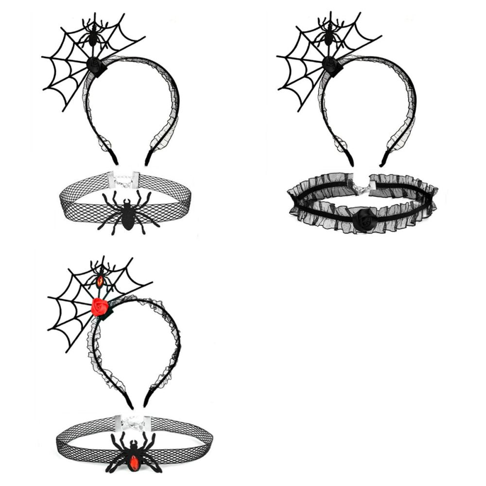 Halloween Black Lace Headbands with Clavicle Choker Necklace Halloween Hair Hoop for Party Supply Cosplay Decoration