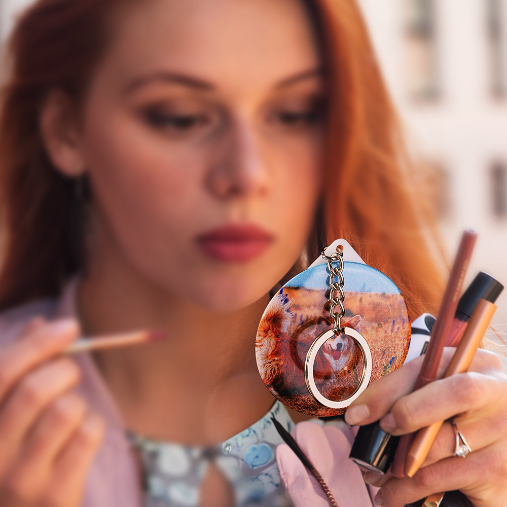 Personalised Photo Keychain with Round Mirror Keychain Gift for Her