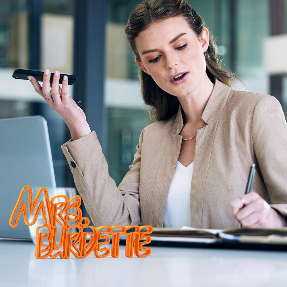 This desk name plate is personalized just for you! This unique office sign is a modern way to represent your title, making a great impression and setting a professional tone in any work environment.