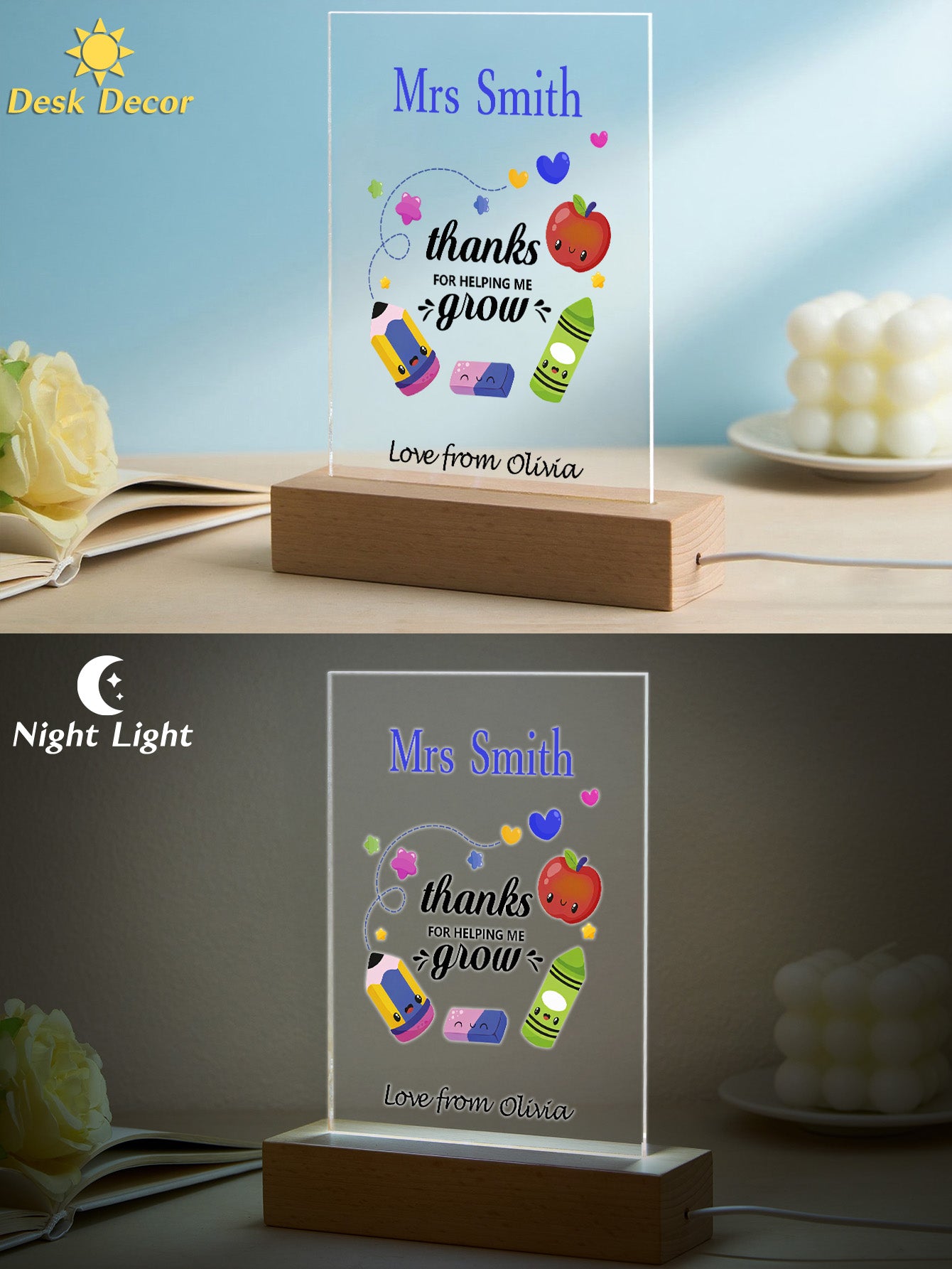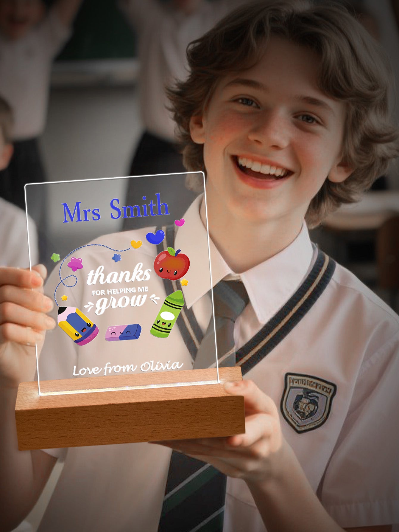 Brighten up the new school season with our Custom Name Transparent Night Light—a thoughtful and practical gift for teachers and students alike. Crafted with durable materials and designed to glow with a soft white light, this night light adds a warm and cozy atmosphere to any desk or room. Personalize it with names or special engravings to make it truly unique, perfect for celebrating Teacher's Day, back-to-school occasions, or as a meaningful keepsake that brings both functionality and sentiment.