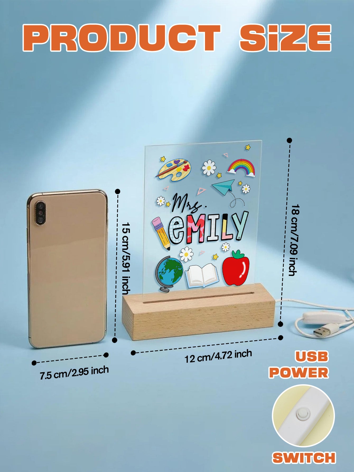 Brighten up the new school season with our Custom Name Transparent Night Light—a thoughtful and practical gift for teachers and students alike. Crafted with durable materials and designed to glow with a soft white light, this night light adds a warm and cozy atmosphere to any desk or room. Personalize it with names or special engravings to make it truly unique, perfect for celebrating Teacher's Day, back-to-school occasions, or as a meaningful keepsake that brings both functionality and sentiment.
