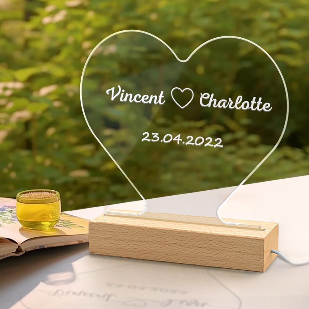 Custom Heart Shape Night Light Engraved Night Light Anniversary Gifts
