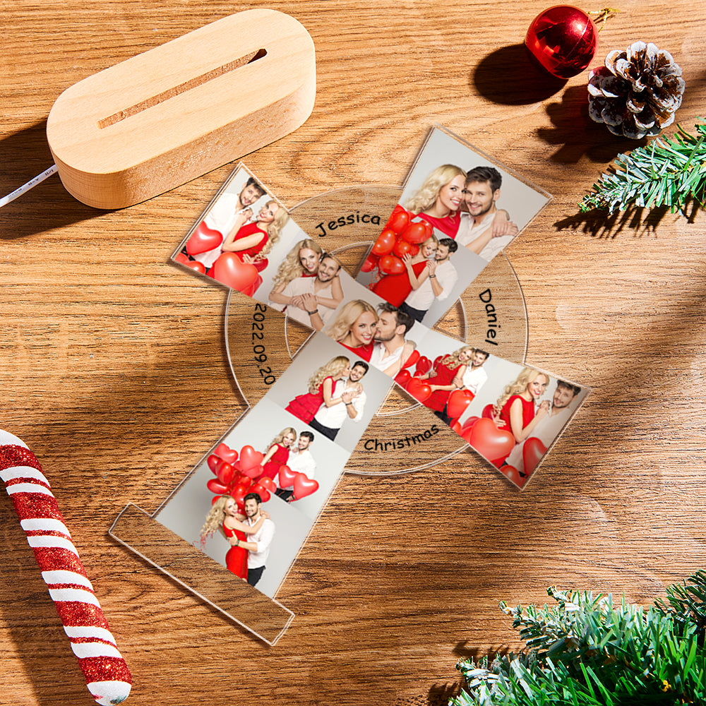 Custom Photo Engraved Cross Night Light Personalized Acrylic Lamp Gift for Lover