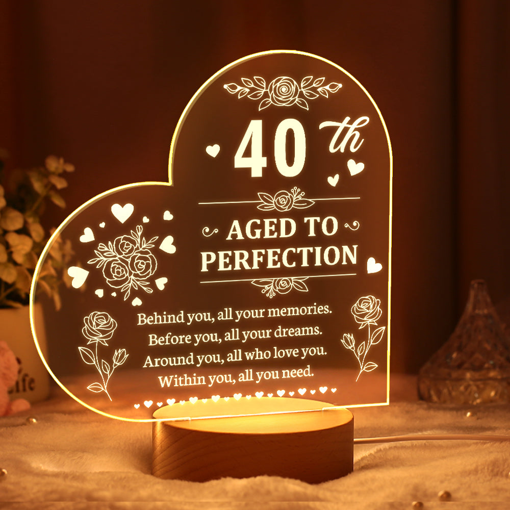 Personalised Birthday Night Light Heart Shaped Acrylic Lamp Gifts for Friends or Family