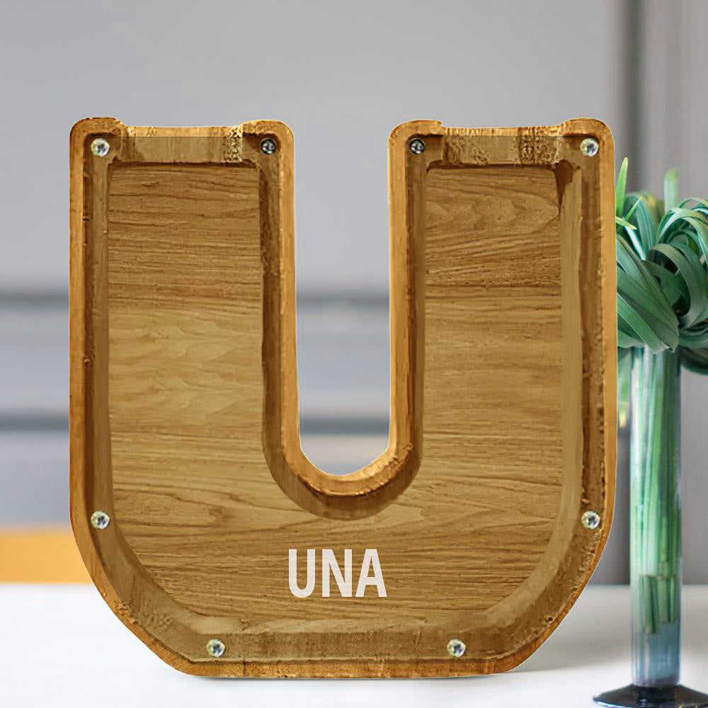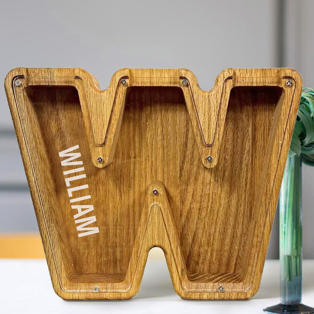 Personalized 26 Letters Piggy Bank Custom Name Wooden Money Box - Tung Wood