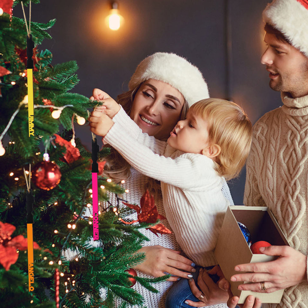 Brighten up your Xmas tree with this personalized Lightsaber ornament! This custom Christmas gift features the names of your family members for a unique, fun, and humorous way to decorate your tree. Hang it up and enjoy the Force this holiday season!