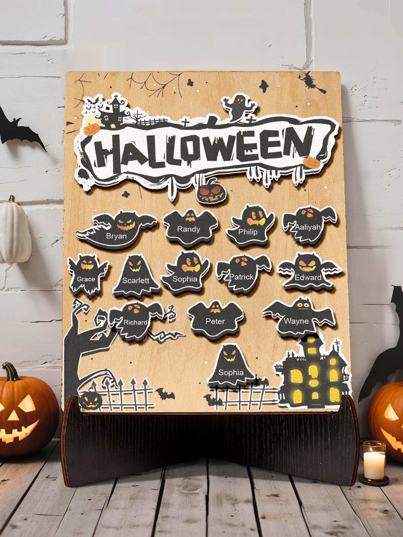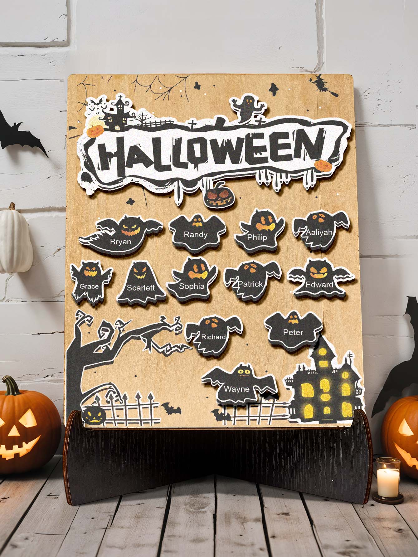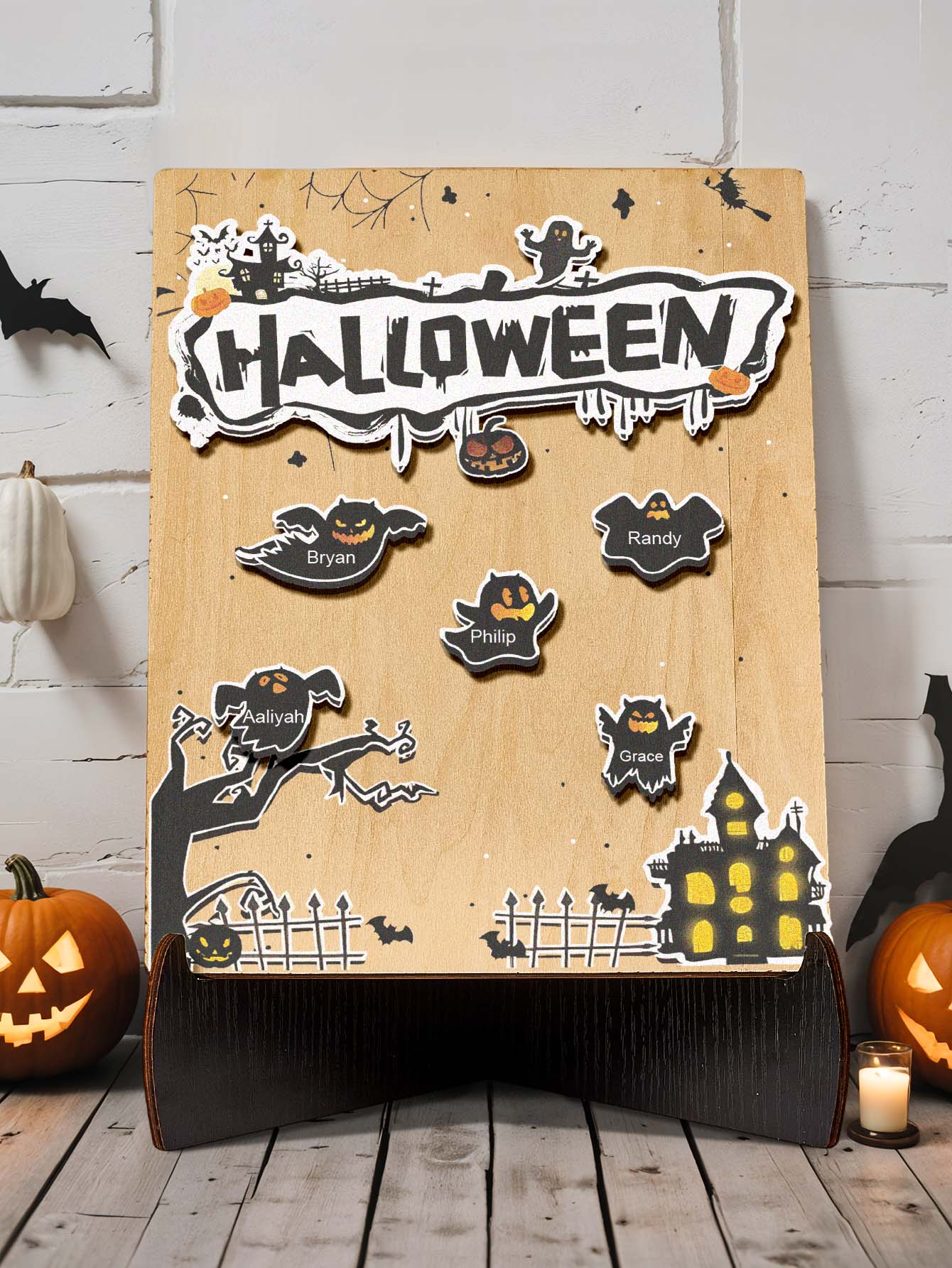 Personalized Hallowmas Wooden Ornament with Name Ghost Plaque for Halloween Gift