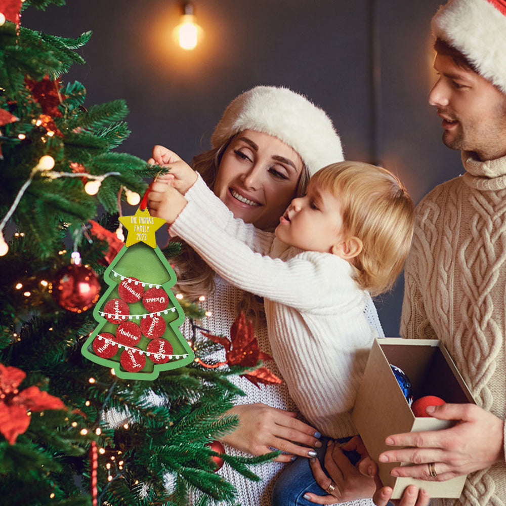 Elevate your holiday decor with our tree shaker ornament. These charming shaker ornaments personalized with your family names, are a heartfelt addition to your Christmas tree. Create cherished memories with this unique Christmas keepsake, perfect as a gift for family members and a delightful Christmas decoration.