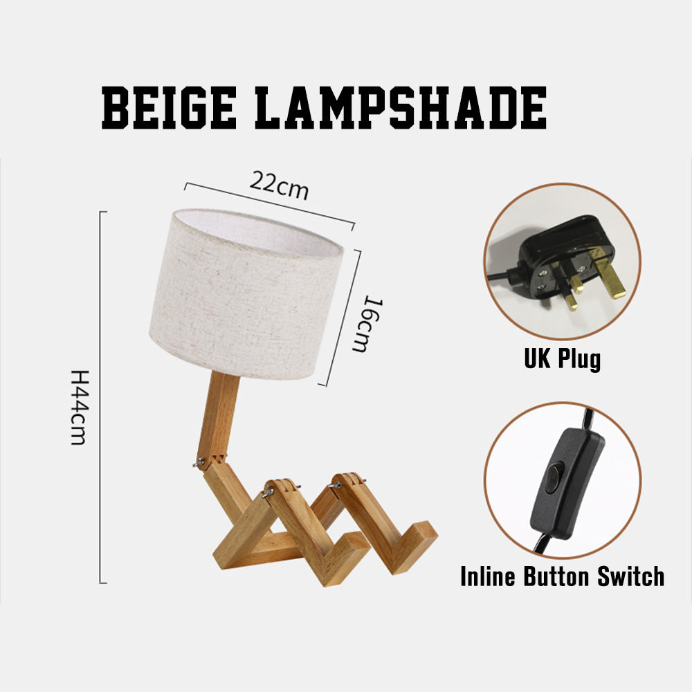 Wooden Robot Table Lamp – Creative Bedside Lamp for Bedroom Artistic Decor Light for Living Room Birthday & Christmas Gift