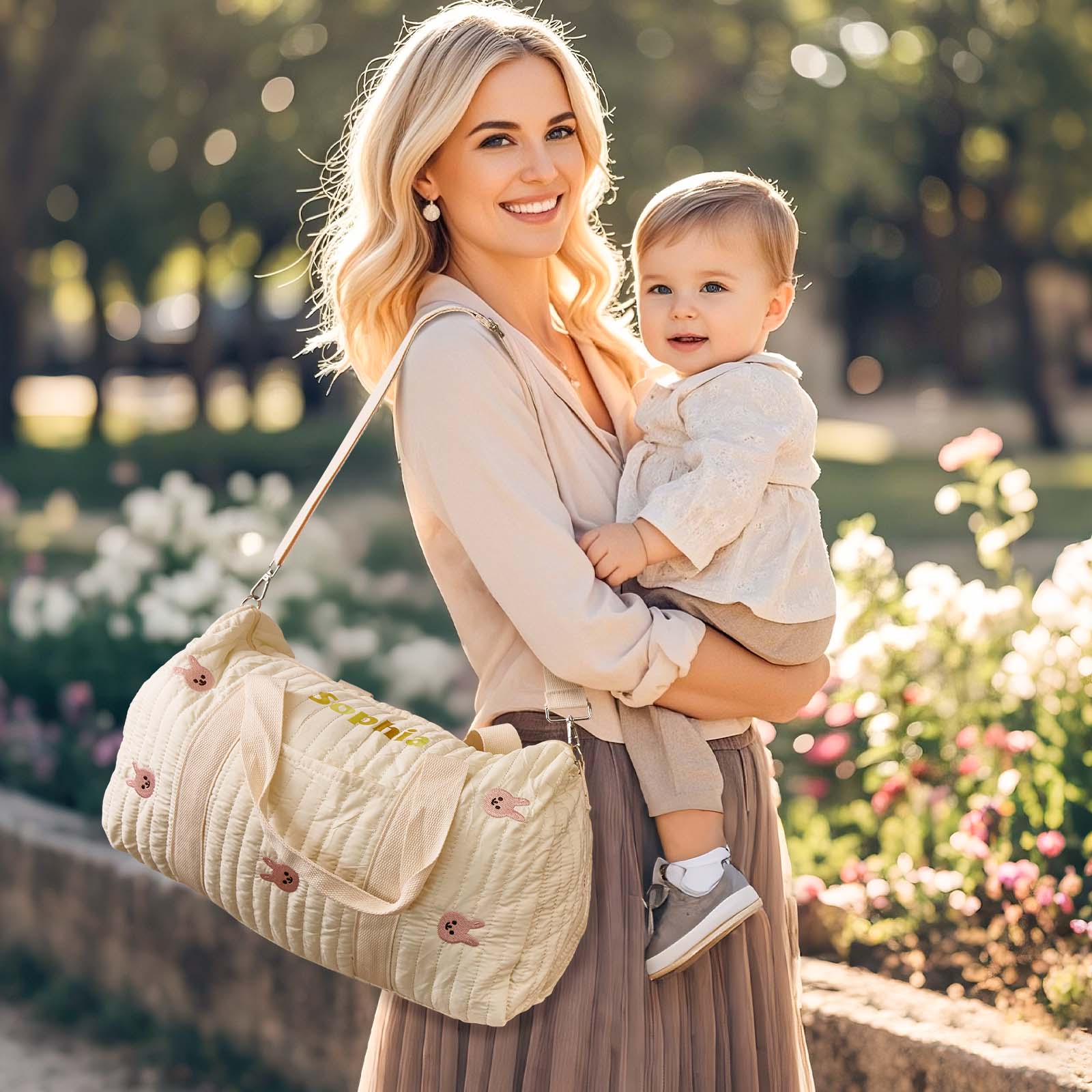 This personalized hospital bag is the perfect gift for expecting mothers. With a cute rabbit bear design, it offers a large capacity and multiple compartments for all baby essentials. Made to make hospital stays easier and more organized, this bag is a must-have for any mom-to-be.
