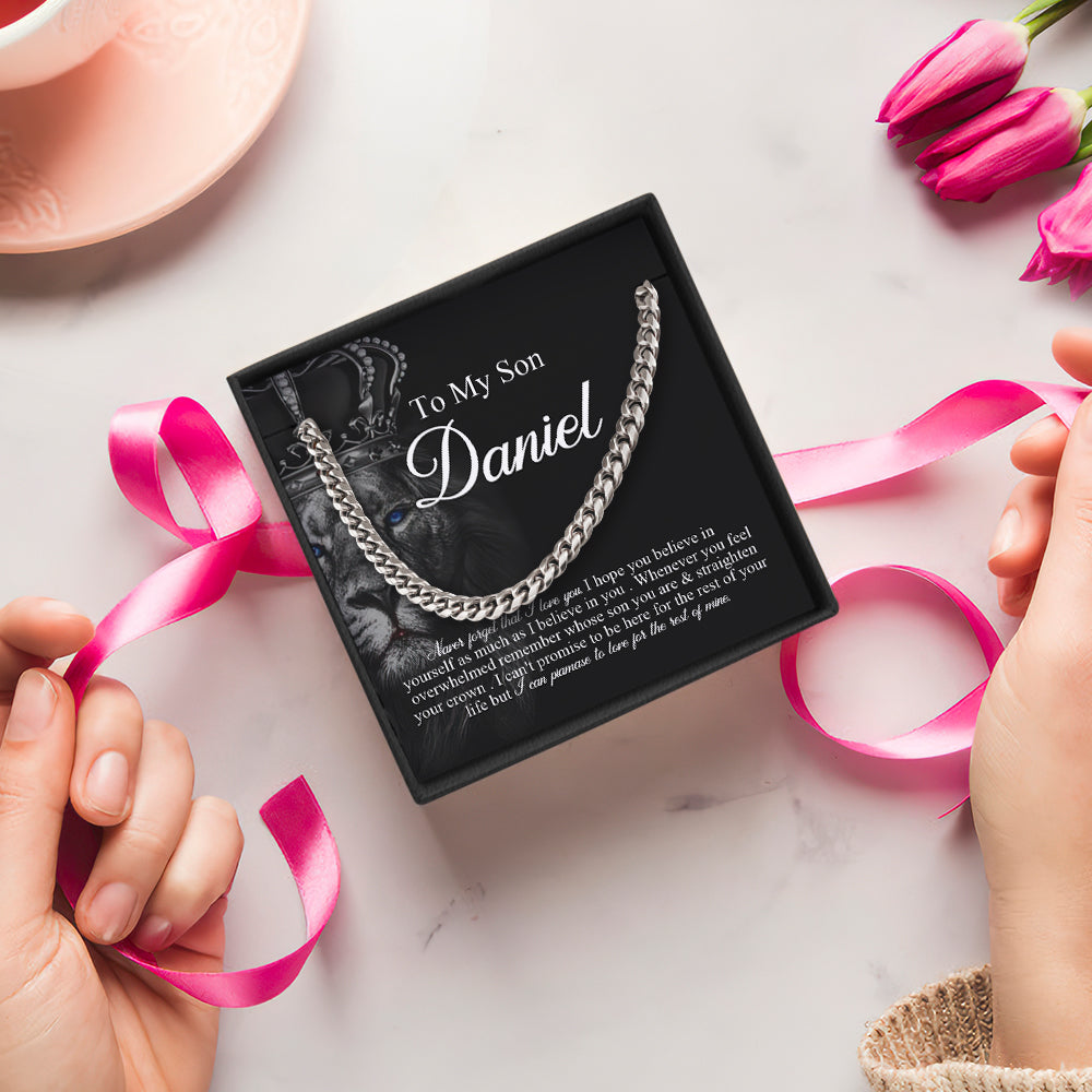 Cuban Chain Necklace With Custom Name Message Card Birthday Gift for Son