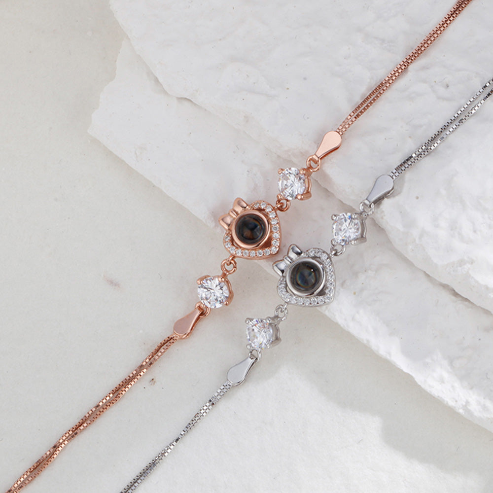 Custom Bow Heart Bracelet Personlized Projection Bracelet 925 Sterling Silver