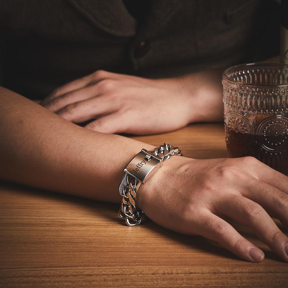 Custom Engraved Bracelet Stainless Steel Cuban Bracelet Gift for Men