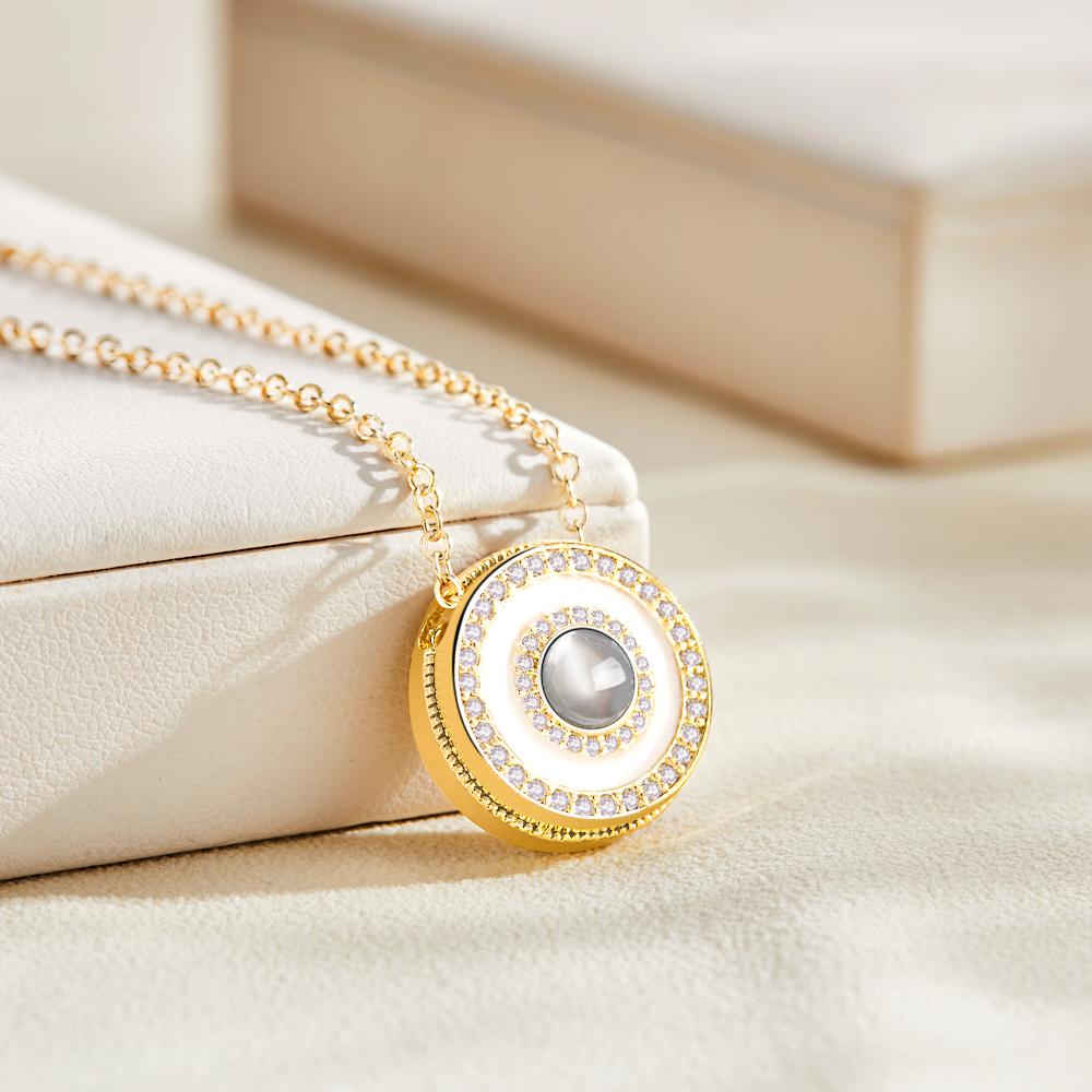 Projection jewelry is a popular trend. Customize the picture you like with micro-engraving technology. Turn on the flashlight function, align the pendant micro-carving plane at the flashlight, and light and shadow will be projected. Unique and delicate jewelry, it is suitable for everyday wear as well as for birthdays, parties and other occasions.
