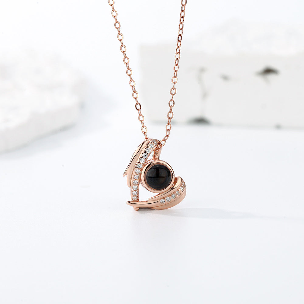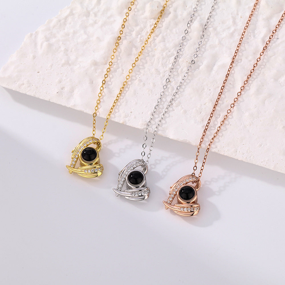 Custom Projection Photo Necklace Feather Angel Wings Necklace