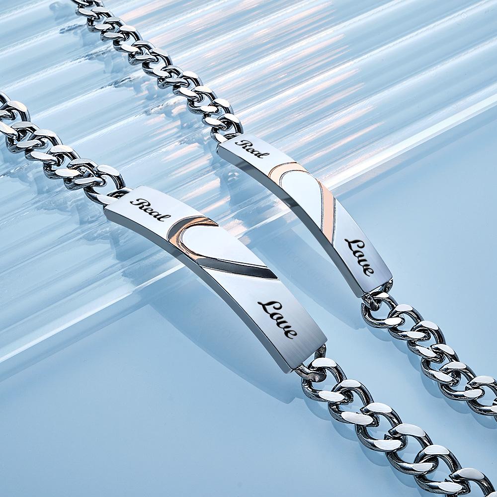 Engraved Couple Bracelet Personalized  Love Heart Wide Chain Bracelet Valentine's Day Gifts