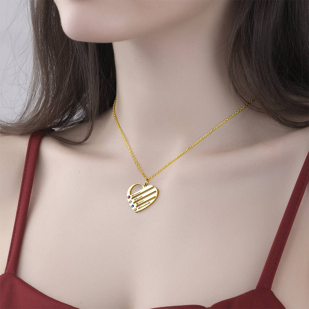• Heart-shaped design, with 1-4 birthstones, personalized 1-4 names