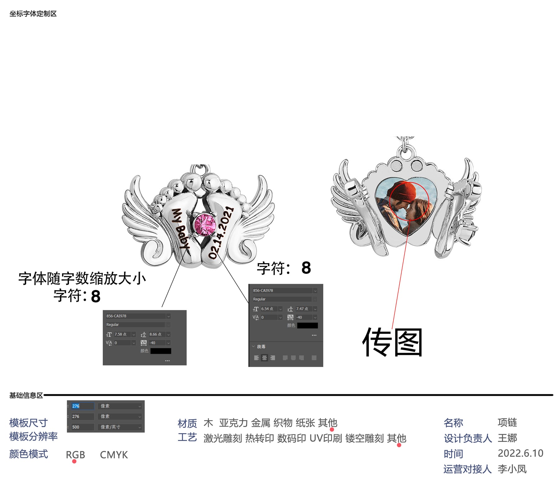 • Angel foot locket design, with a name, date, a photo and a birthstone