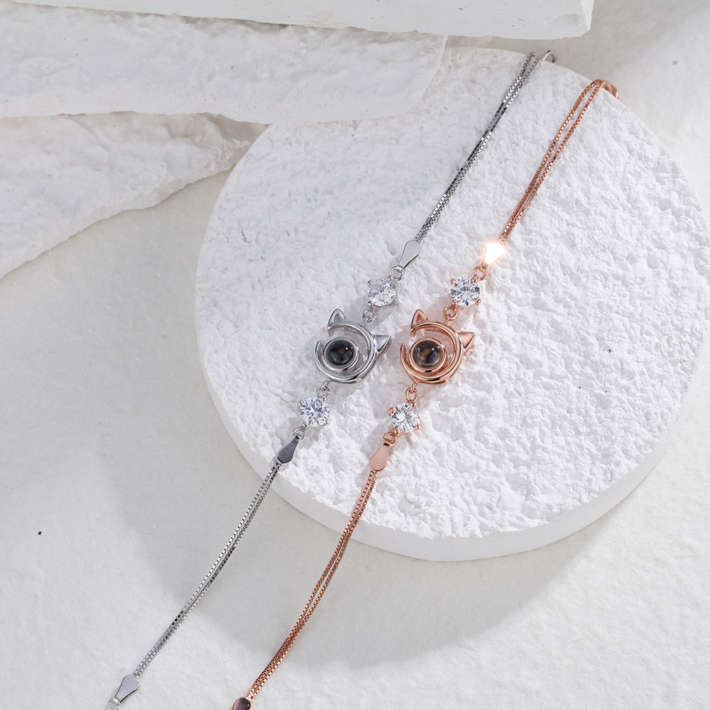 Personalized Cat Pendant Picture Projection Bracelet 925 Sterling Silver