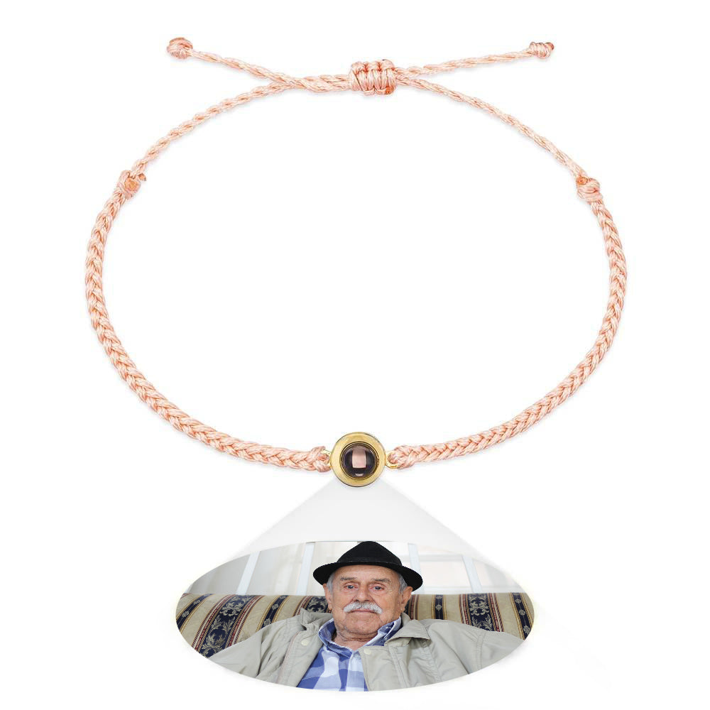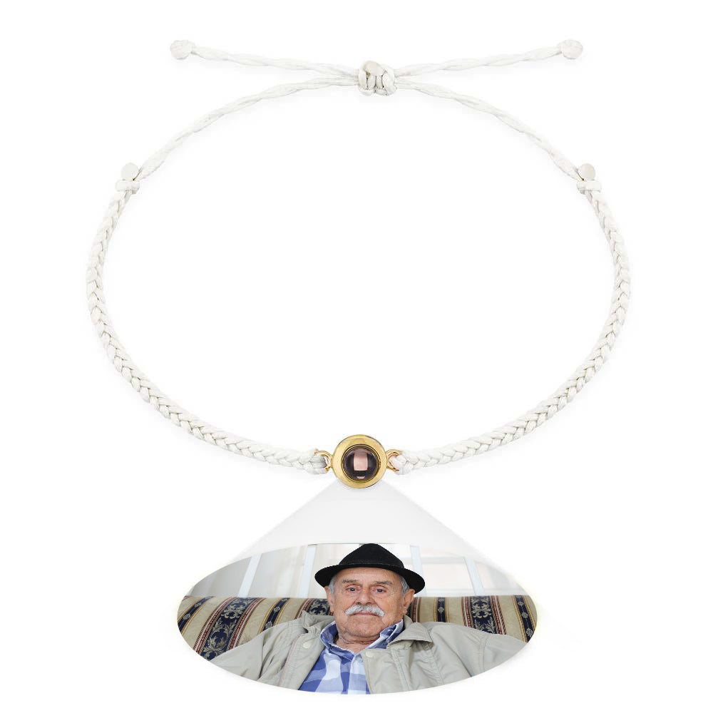 Surprise your loved ones with this personalized photo projection bracelet. Made with a braided black rope design, this bracelet is a perfect gift for parents and grandparents. The photo projection feature adds a unique touch to make it even more special. Order now and create lasting memories!