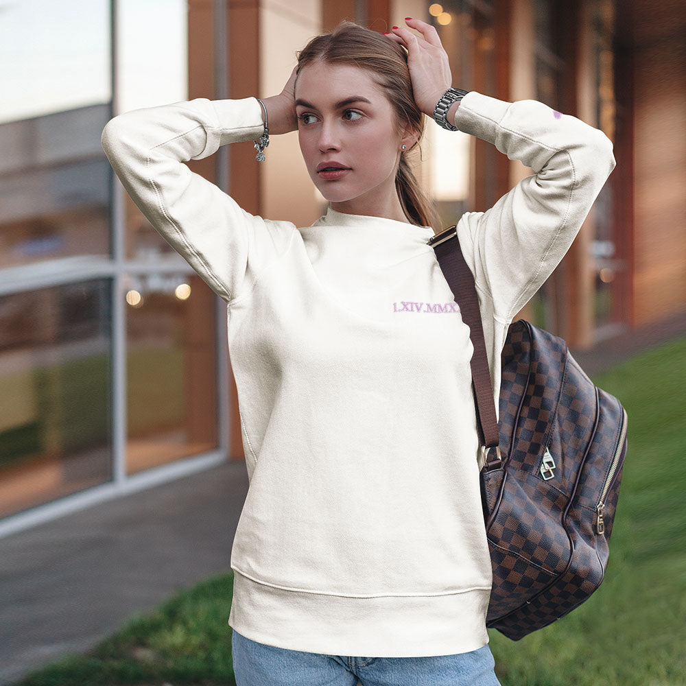 Custom Engraved Hoodie Embroidery Round Neck Roman Numeral Date Couple Gifts