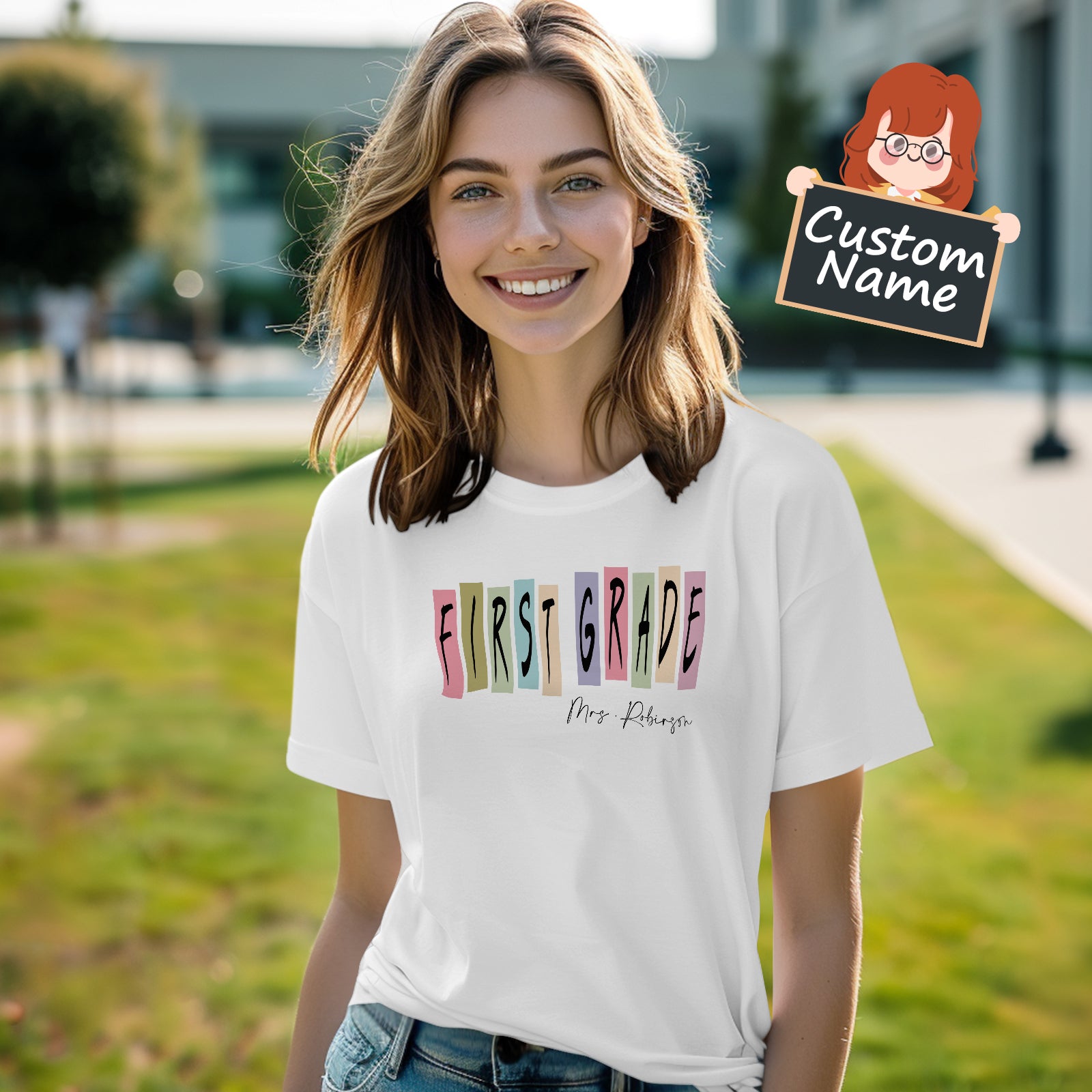 Personalized First Grade T-Shirt Teacher Custom Name Shirt Back to School Gifts
