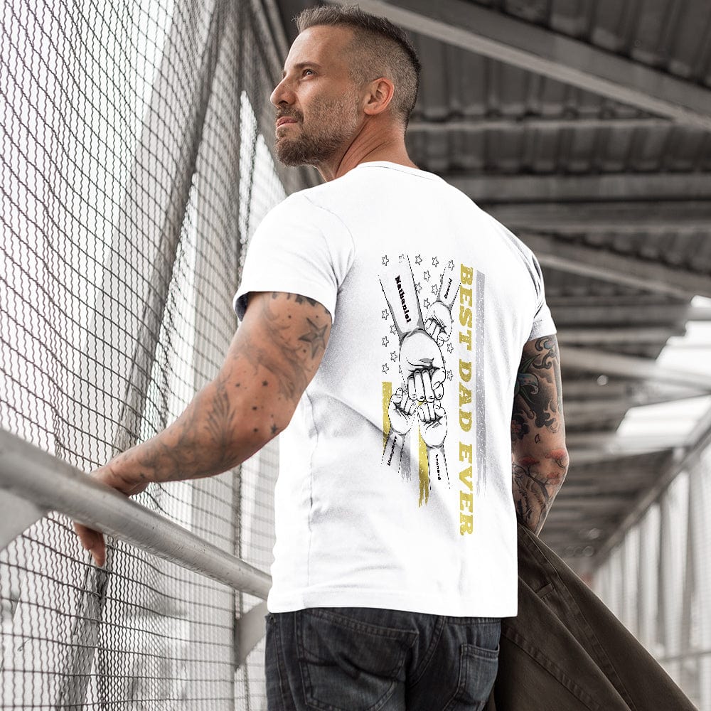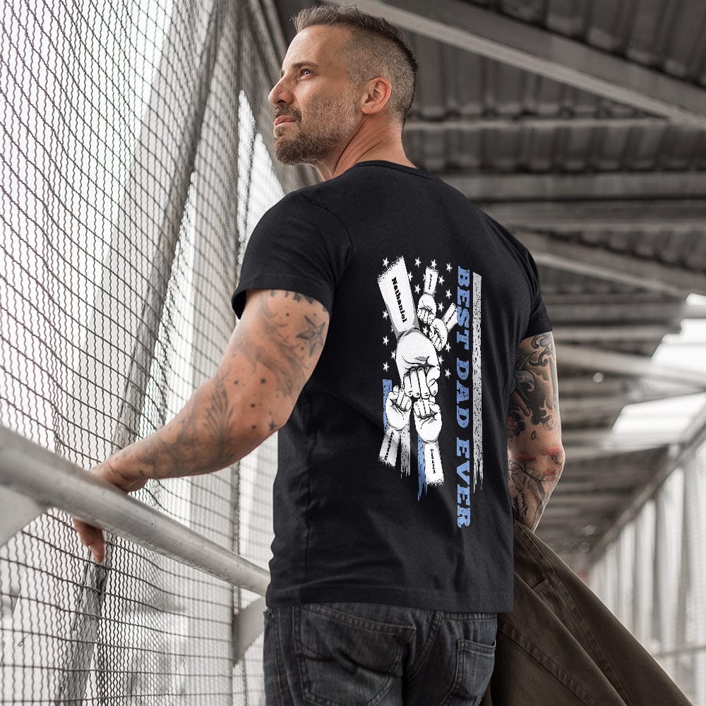 Personalized Fist Bump T-Shirt Custom Engraved Back Printed T-Shirt Father's Day Gift