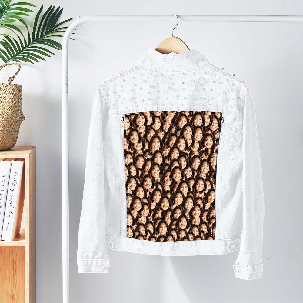 Personalized Funny Jean Jacket with Pearl Custom Face Denim Jacket Gift for Women