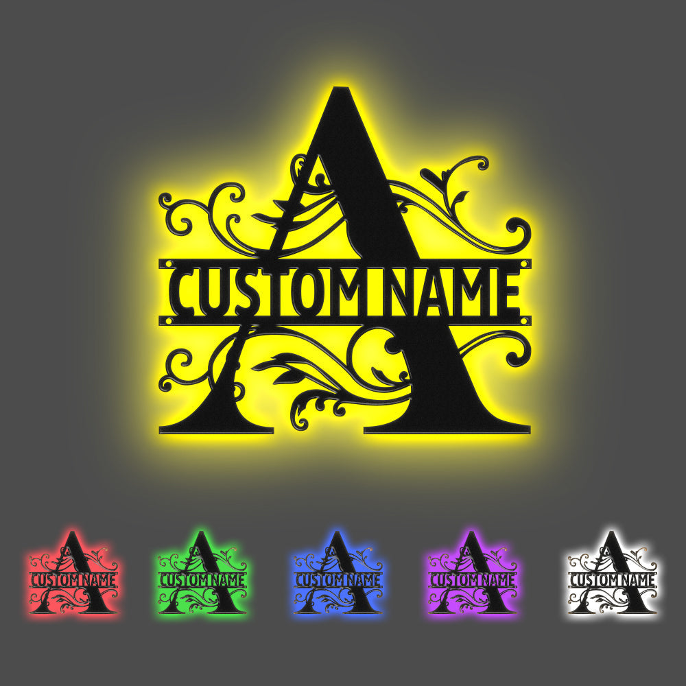 Custom Monogram Name Signs Metal Wall Art LED Lights Home Decor Gift