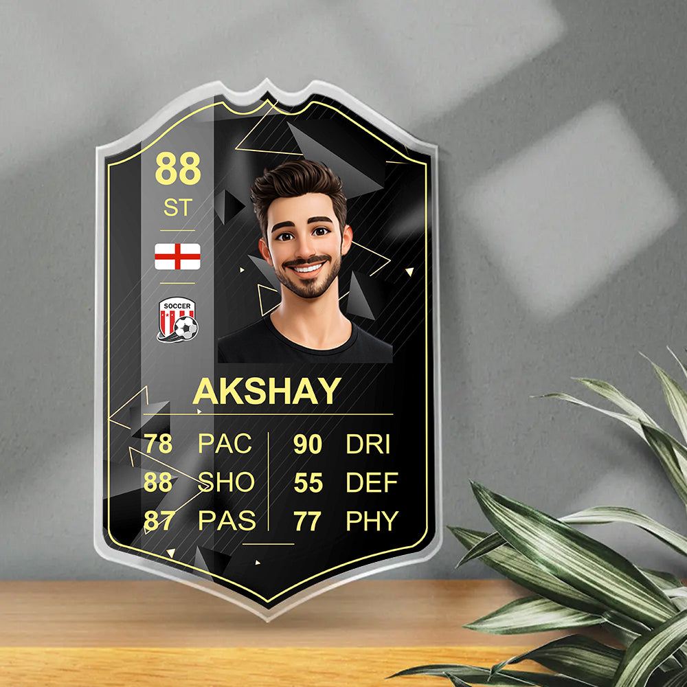 Custom Photo Cartoon-Style Football Scorecard Acrylic Game Card – Personalized Soccer Gift for Fans