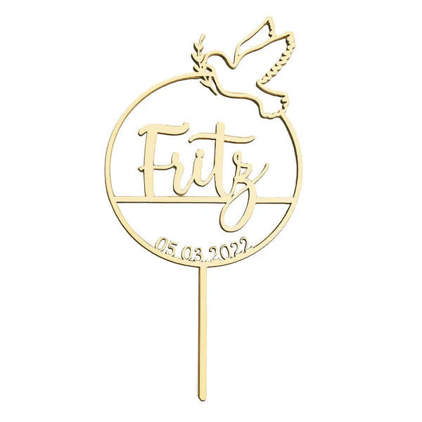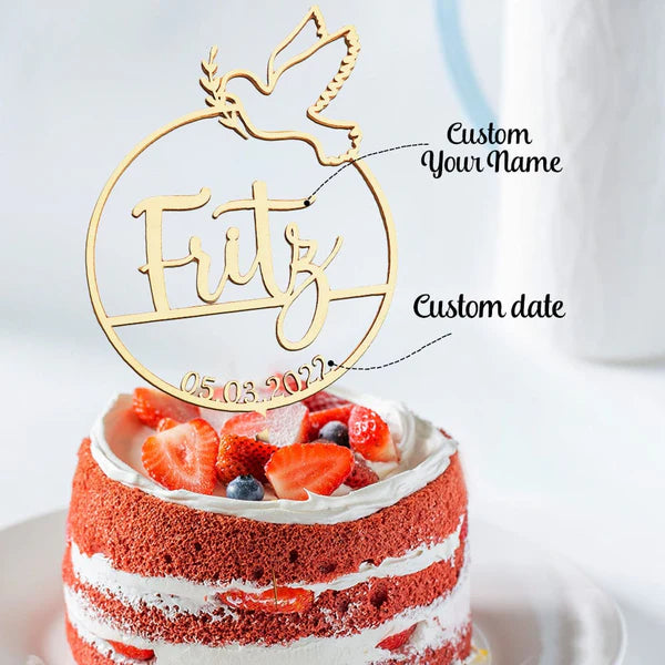 Custom Name Cake Topper Personalized Dove Wooden Cake Decoration