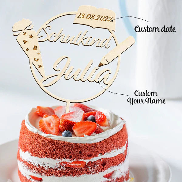 Each cake topper is custom made for each child with their name and the book is engraved with the date of special day of school making it one of a kind and memorable for a long time. To get a lasting memory of this beautiful celebration, you can hang the cake topper later in the children's room.