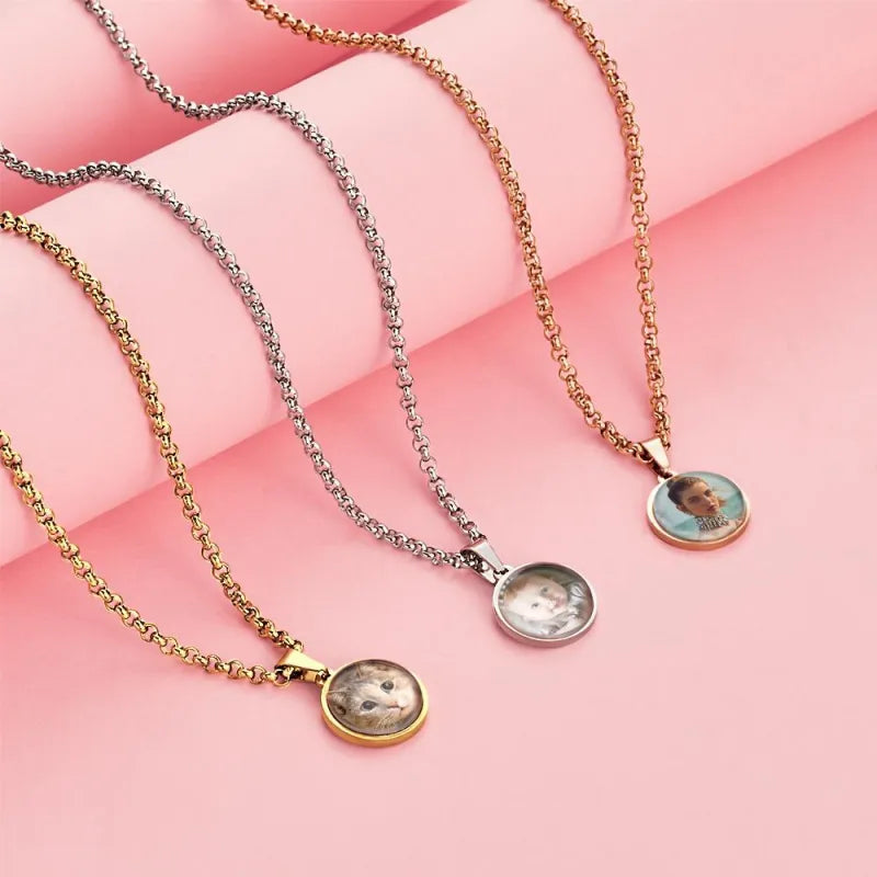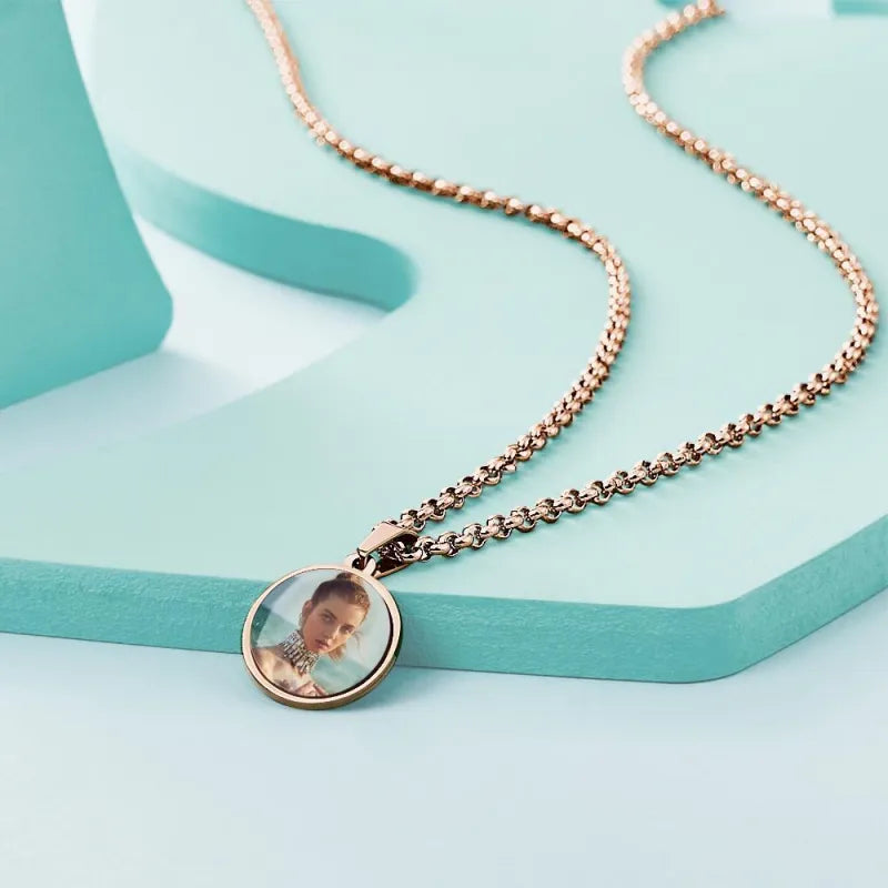 Custom Photo Engraved Necklace Pendant Picture Necklace Double Sided Wedding Gift