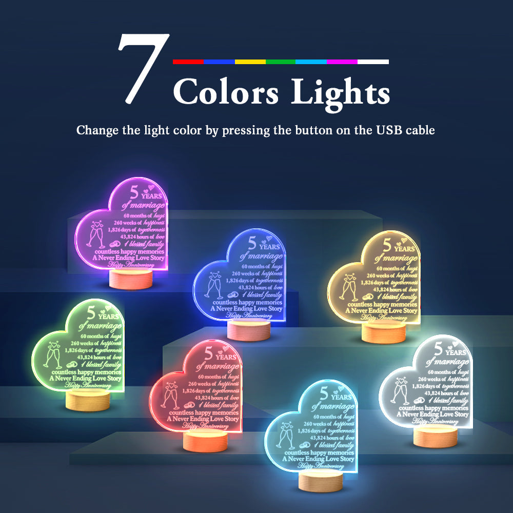 This unique wedding anniversary night light is made of high quality acrylic and engraved with romantic words, it can fully express your love for her or him, it is the perfect wedding anniversary gift for your wife or husband. This is a exquisite gift, she will be very touched when she receives such a beautiful gift.