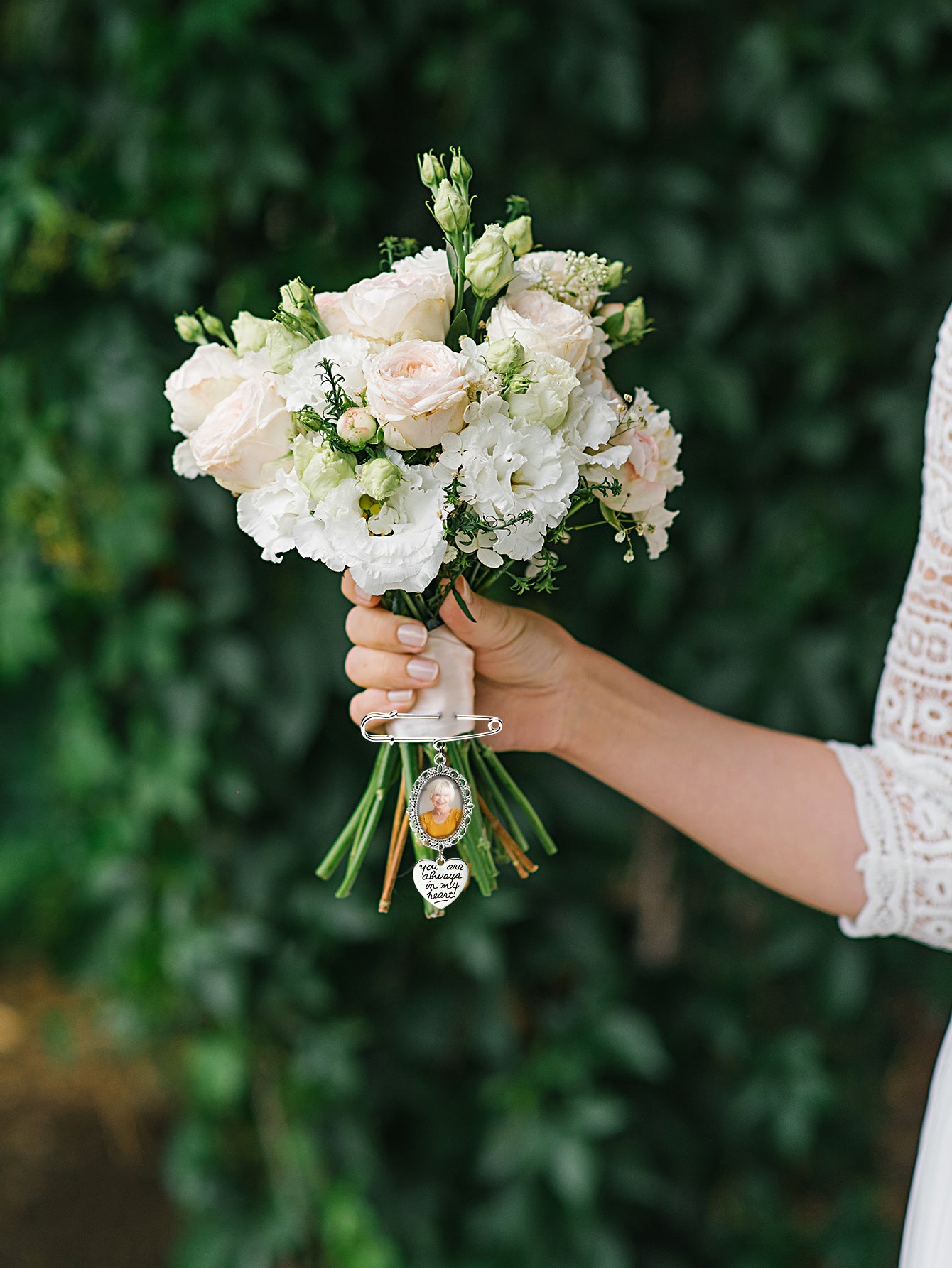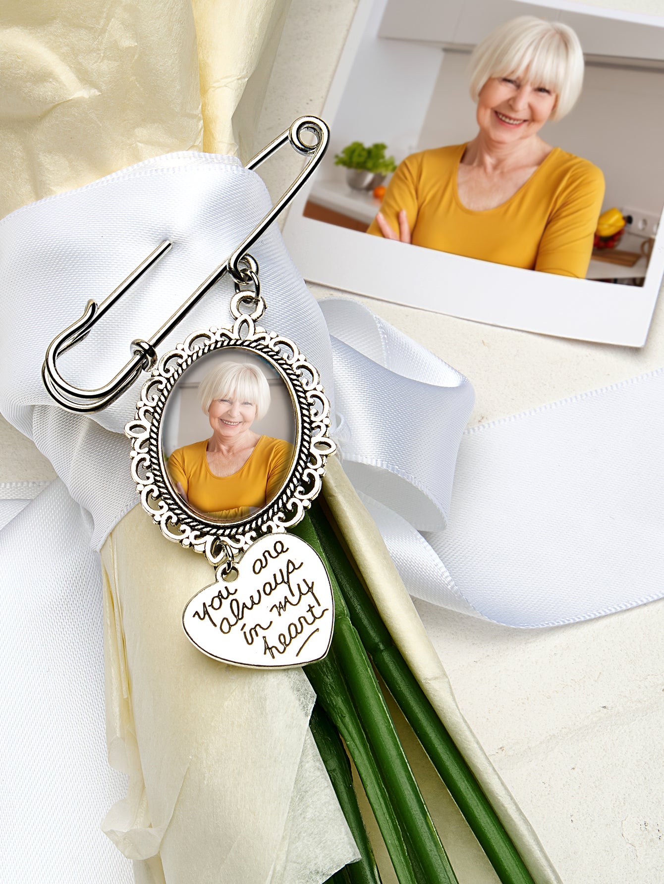 This Personalized Angel Wings Pin Brooch is the perfect way to add a special touch to a wedding bouquet or to serve as a memorial gift for a bride. It can be personalized with a photo, making it a sentimental and unique accessory. A thoughtful and heartfelt addition to any wedding or special occasion.