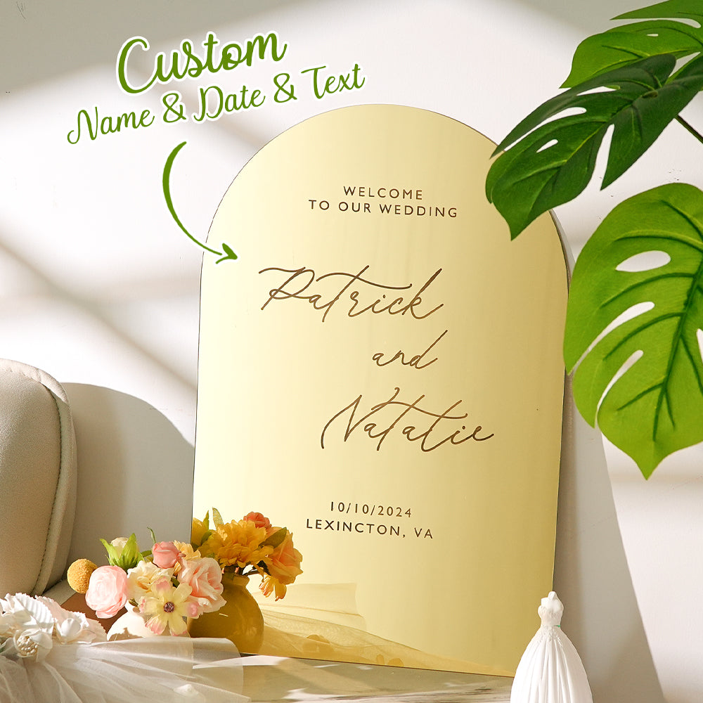 Personalized Arched Wedding Sign Gold Mirror Welcome Sign Gift for Wedding
