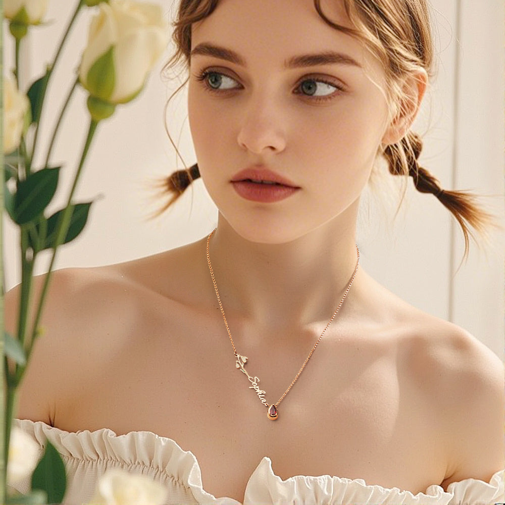 This personalized necklace is the perfect gift for her, featuring her birth flower, birthstone, and custom name. It combines meaningful personalization with elegant design. Celebrate her uniqueness and style with this one-of-a-kind necklace.