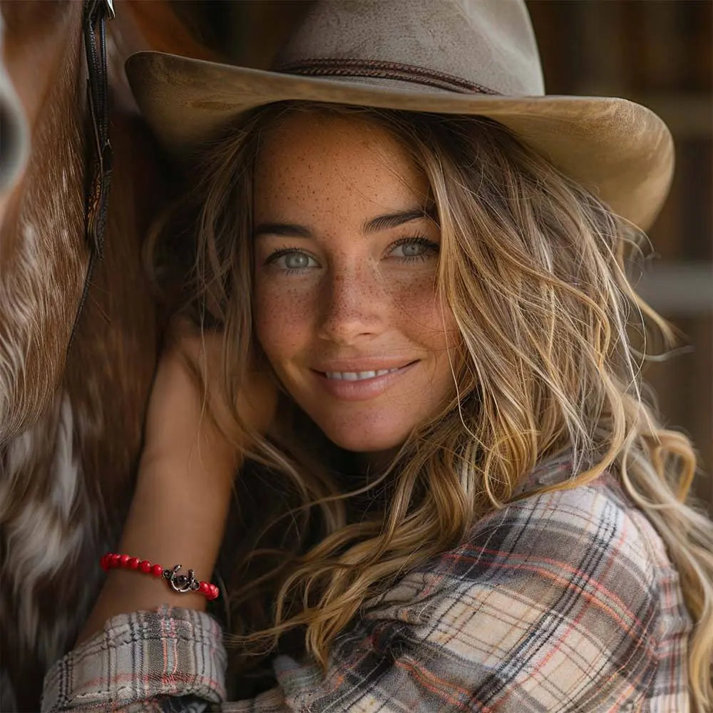 This personalized bracelet is the perfect gift for any horse lover. Featuring a horseshoe charm and photo projection beads, it is a unique and meaningful piece. Show your love for horses with this custom bracelet that can be tailored to your specific style.