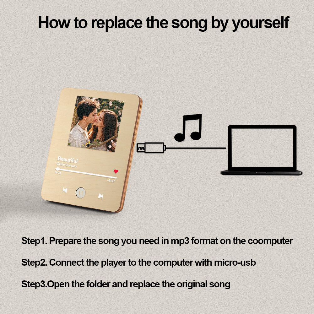 Personalized Photo Wooden Music Record Player Wedding Anniversary Gift for Couples